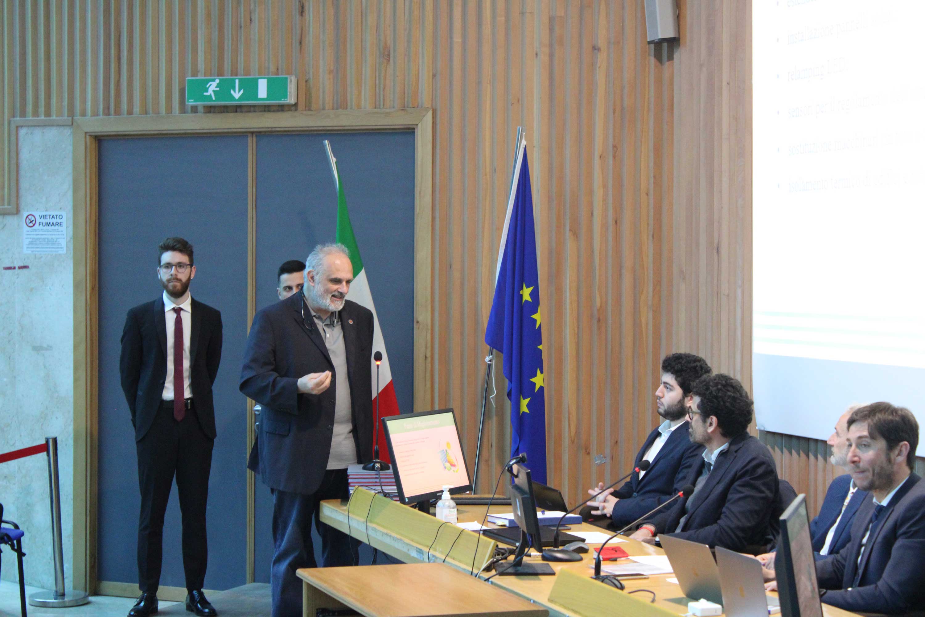 Les deux garçons ont été présentés par le président de la Commission, ainsi que par leur rapporteur, Manfredi Bruccoleri qui, à la fin de la discussion, a donné la parole à notre responsable de l'innovation, Alberto Baesso, qui a parlé de la coopération avec l'université, en réussissant à faire comprendre aux personnes présentes à quel point la collaboration constante entre les établissements de formation et les entreprises locales est fondamentale, car grâce à cette interaction constante, il est possible de former de jeunes diplômés compétents et prêts à affronter le monde du travail.